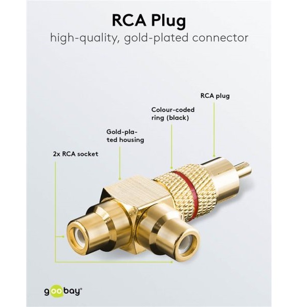 • Cinch Splitter teilt ein Audiosignal von 1x Cinch Stecker auf 2x Cinch Buchsen auf.