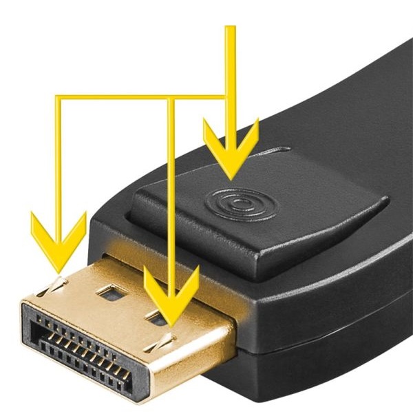 DisplayPort Stecker mit mechanischer Steckerverriegelung für sicheren Halt ohne Wackelkontakte
