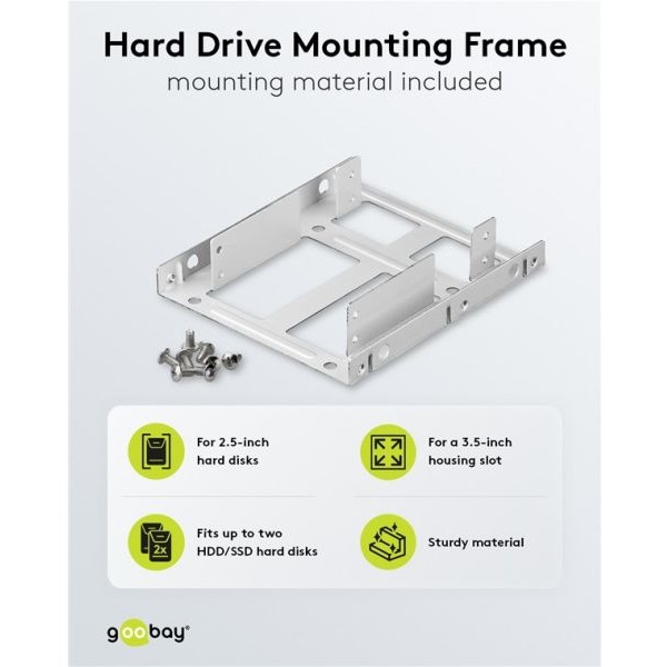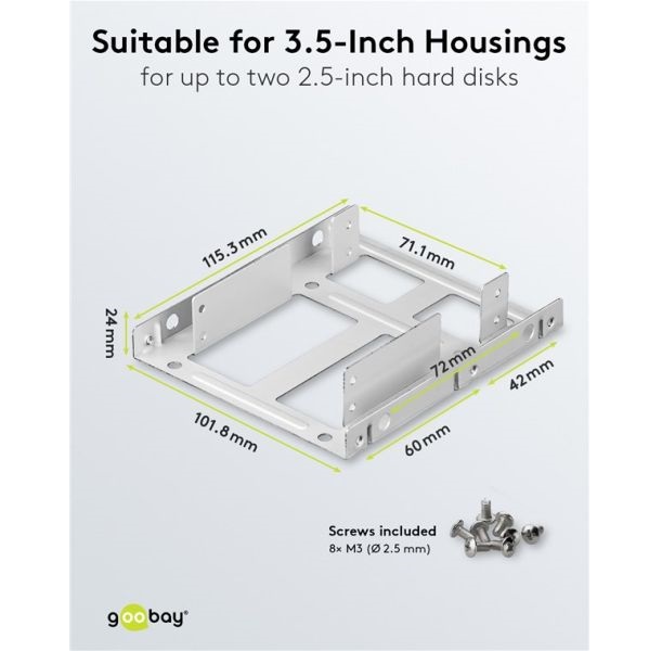 geeignet für den Einbau von bis zu zwei 2,5 Zoll-Festplatten in einen 3,5 Zoll-Gehäuseschacht