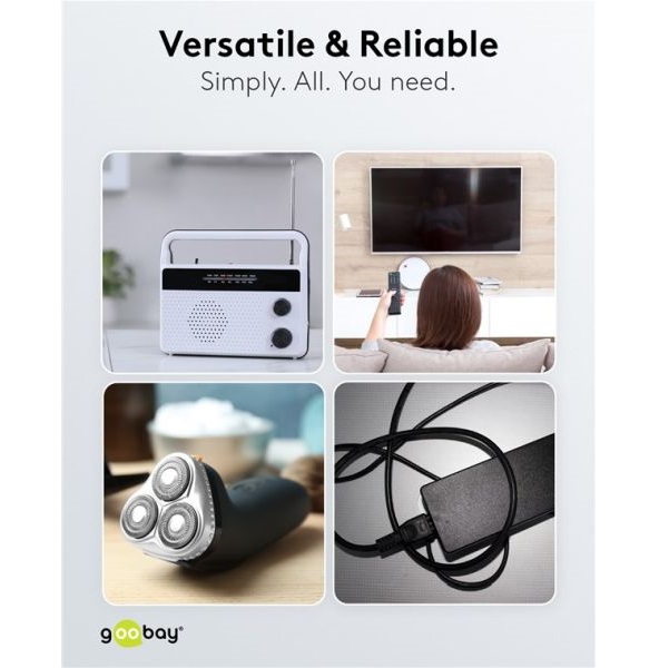 - Kompatibel mit vielen Gerätenetzteilen, z. B. mit dem Netzteil des Sky Q Receivers