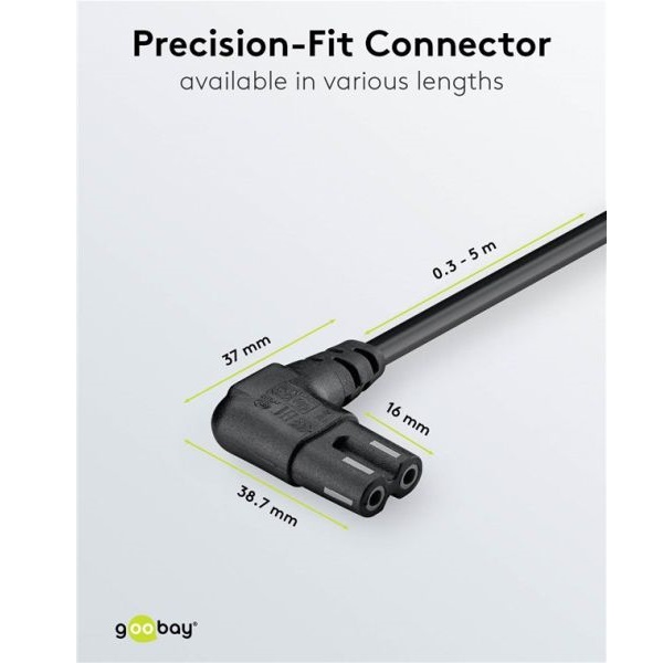 platzsparendes Stromkabel durch 90° abgewinkelte Stecker