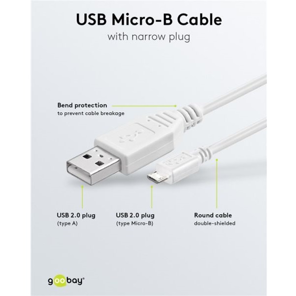 USB Micro Datenkabel Ladekabel 2.0 Hi-Speed weiß 1 m